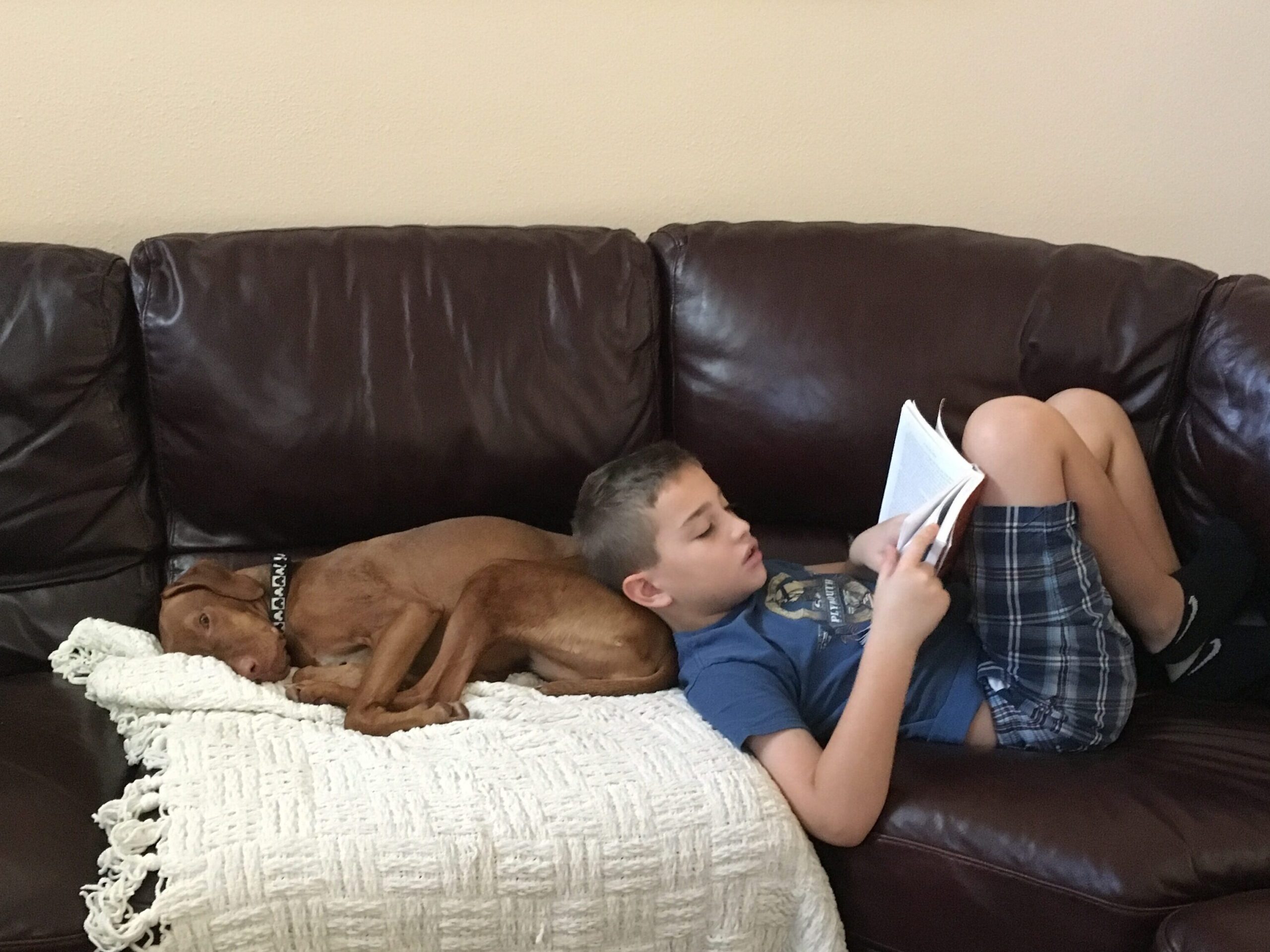 When I’m not homeschooling my youngest, driving around town for errands or lessons here or there, or answering emails or texts that are co-op related, you’ll probably find me spending time with my husband of over 20 years, our two boys—our oldest graduated high school in 2025 and currently in college—and our sweet Vizsla, Nala. I love spending time with extended family, game nights with friends, cooking, baking sourdough, crocheting, or (more often than not) falling asleep on the couch next to my husband while watching a movie!